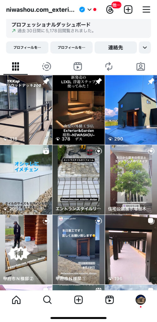 公式Instagramのフォローをお願いします!エクステリア・外構工事現場の様子など日々アップしています!ぜひご覧ください!